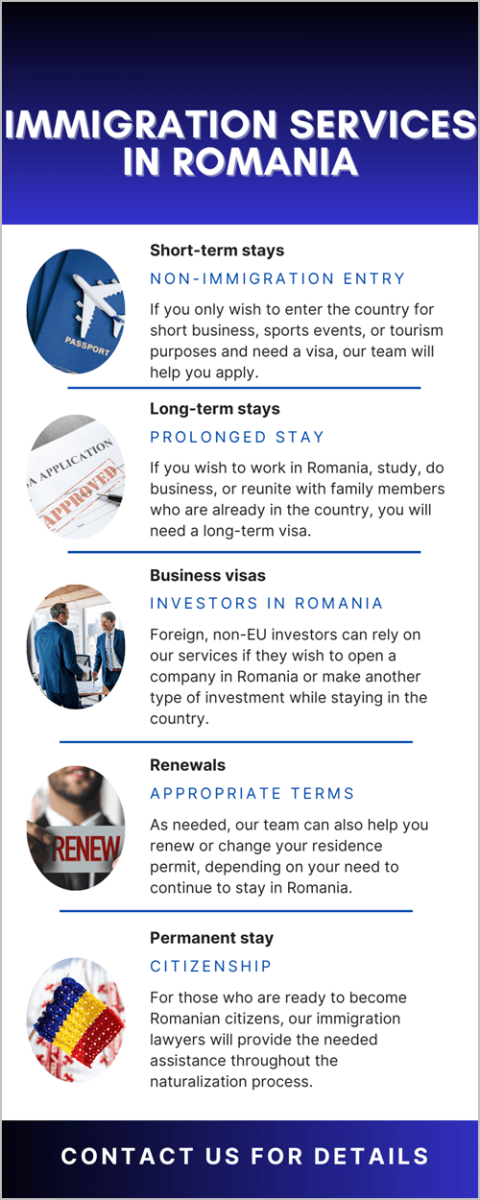 Contact us now for more information and to schedule an appointment with our immigration lawyers from Bucharest.